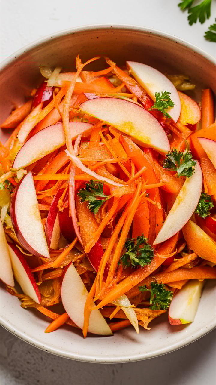 Perfect for summer lunches, holiday dinners, or light snacks, this versatile salad balances natural sweetness from apples with the earthy freshness of carrots. The result? A dish that’s both delicious and nutrient-dense, appealing to kids, adults, and wellness enthusiasts alike.
