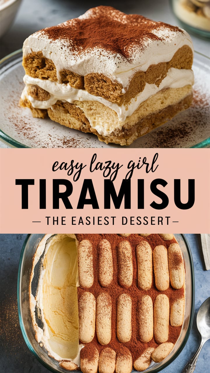 This Lazy Girl Easy Tiramisu Recipe is your new secret weapon for those moments when you crave a fancy dessert but don’t want to lift a finger. Imagine layers of fluffy cream, espresso-soaked ladyfingers, and a dusting of cocoa — all coming together in just minutes. No eggs, no baking, no stress — just pure indulgence made simple.